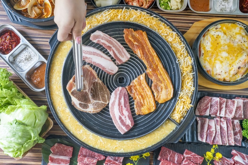 這次來訪,我們嘗試的是牛豬都能一次滿足的頂級四人套餐。內容物有九樣肉品,且套餐提供一份起司烤蛋及無限可續的韓式小菜及生菜。