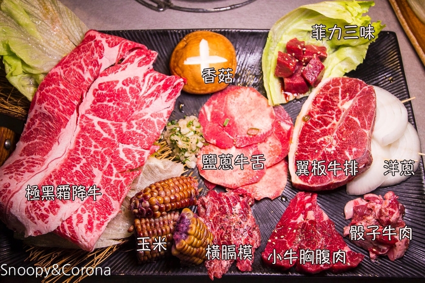 翼板牛排|鹽蔥牛舌|菲力三味|玉米|洋蔥|香菇