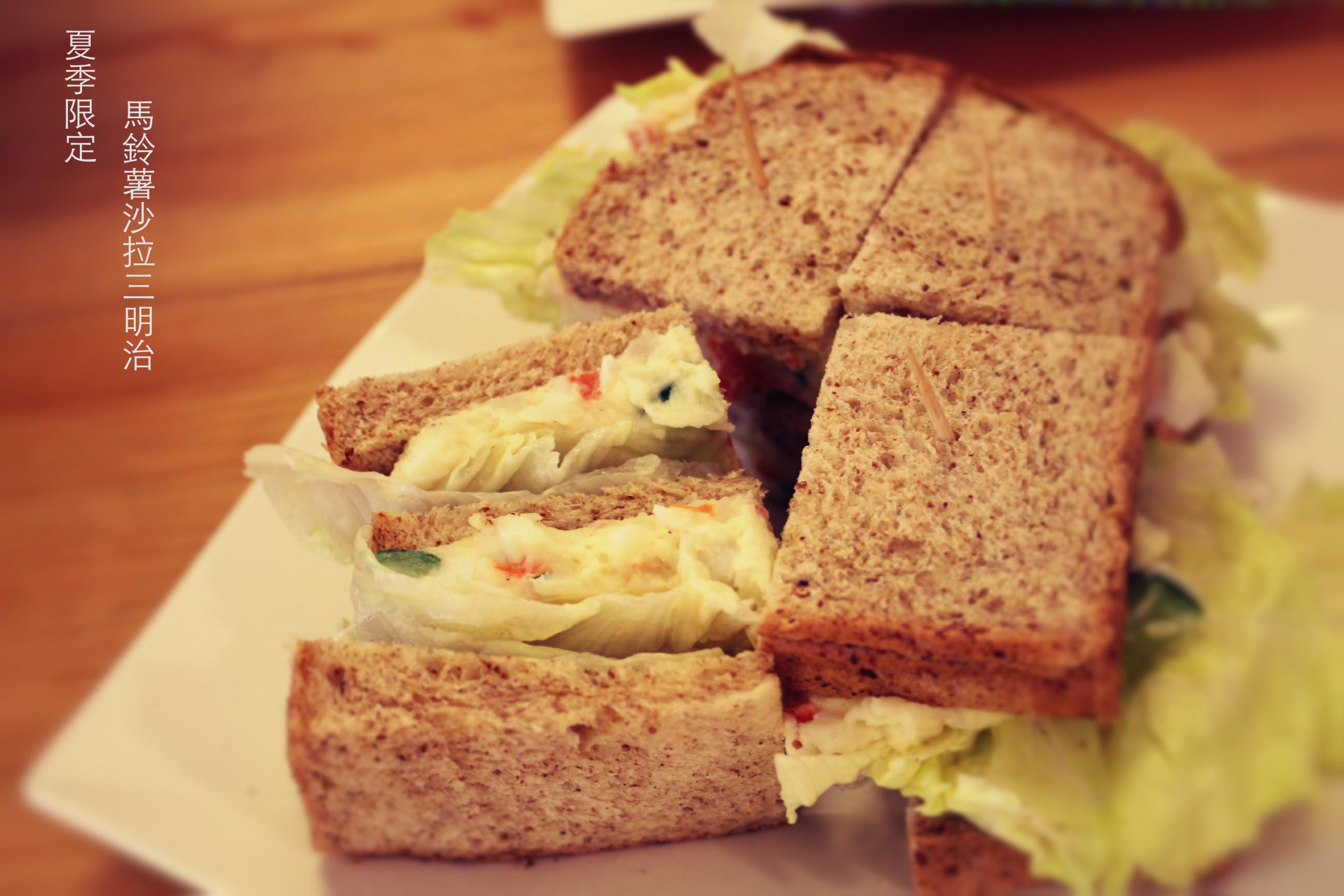 馬鈴薯沙拉三明治,不在菜單上,屬於季節限定的餐點。店長小龜說,他們還是比較喜歡隨著季節變換食材,這樣才不會無聊啊。馬鈴薯清爽的口感,就是為了夏季而做的,非常適合女孩們吃呢。