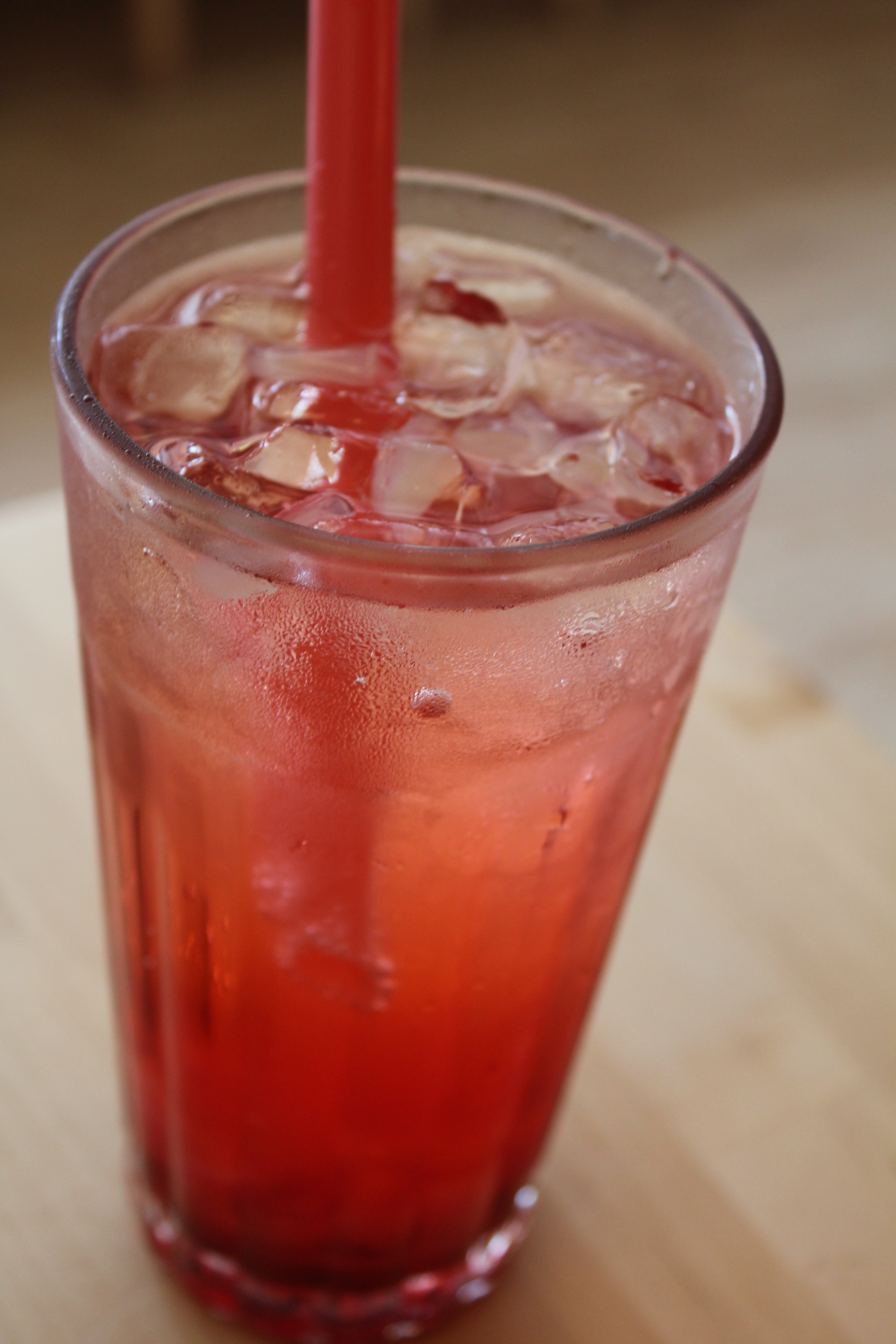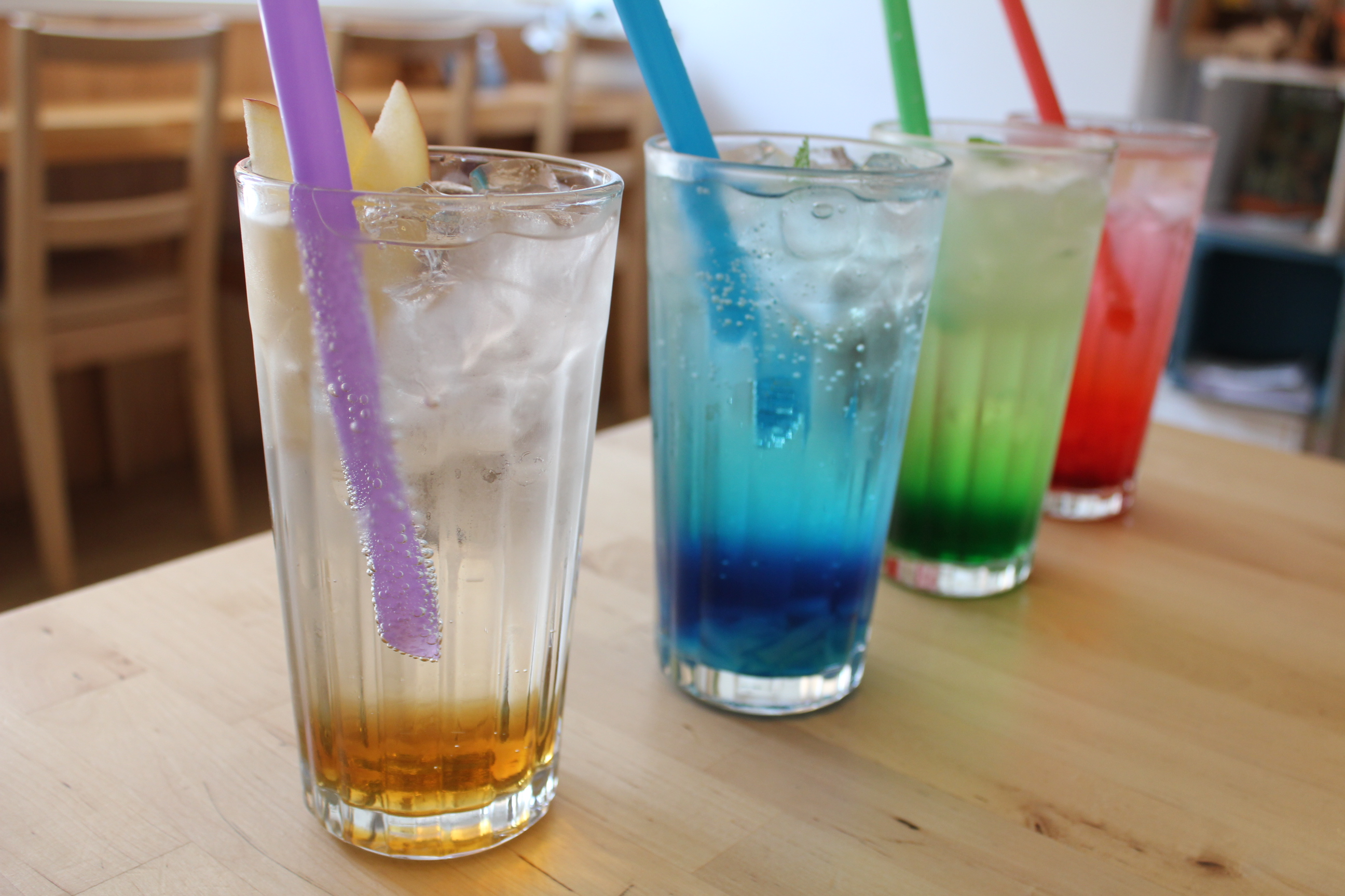 再加杯飲料,這裡的飲料品項很多,醋飲、單品紅茶都有耶,不過,為了讓我們見識與禮物餐廳主題相互呼應的特色飲,上桌的是視覺性酷飲喔,皆是以雪碧為基底!!