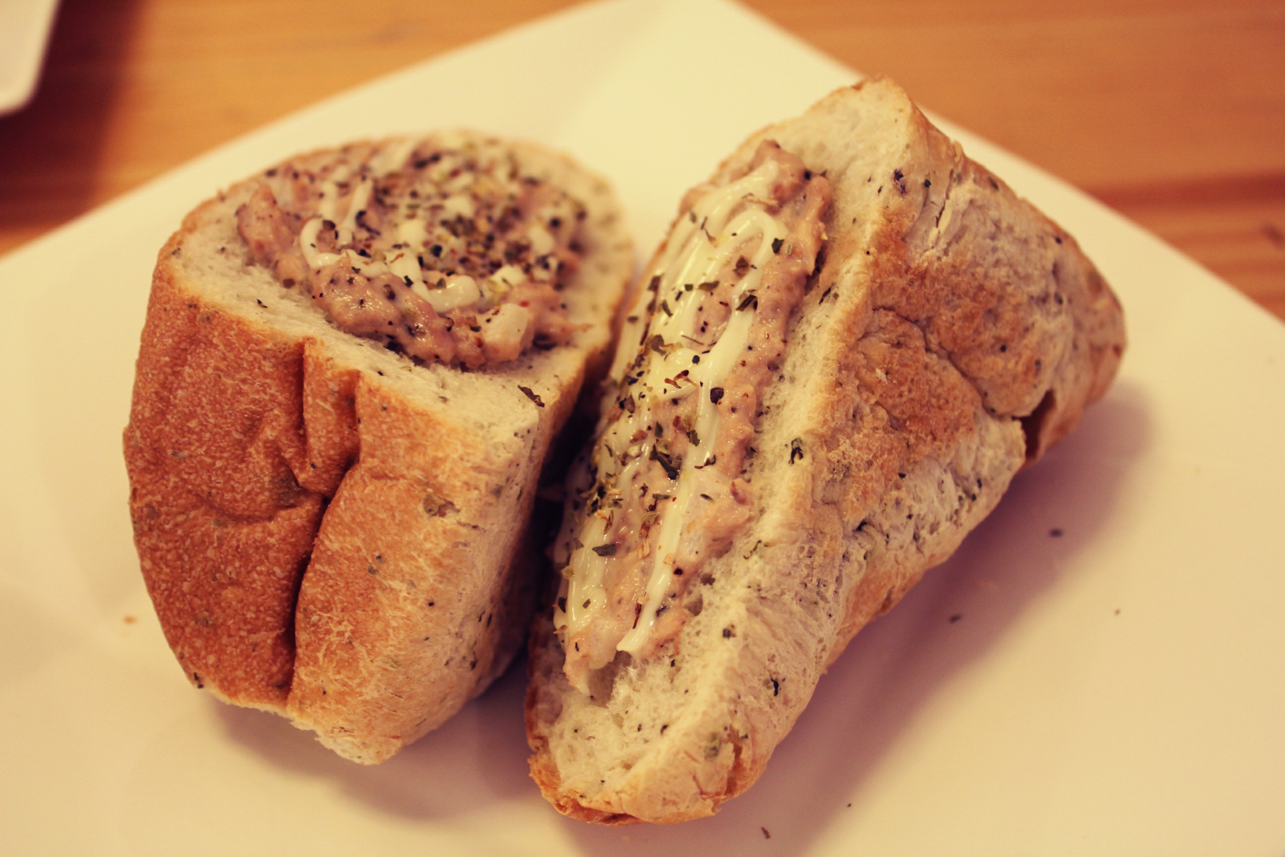 午茶想要更輕鬆吃,也可以單點三角形羅勒鮪魚麵包,60元搞定,輕鬆無負擔耶!