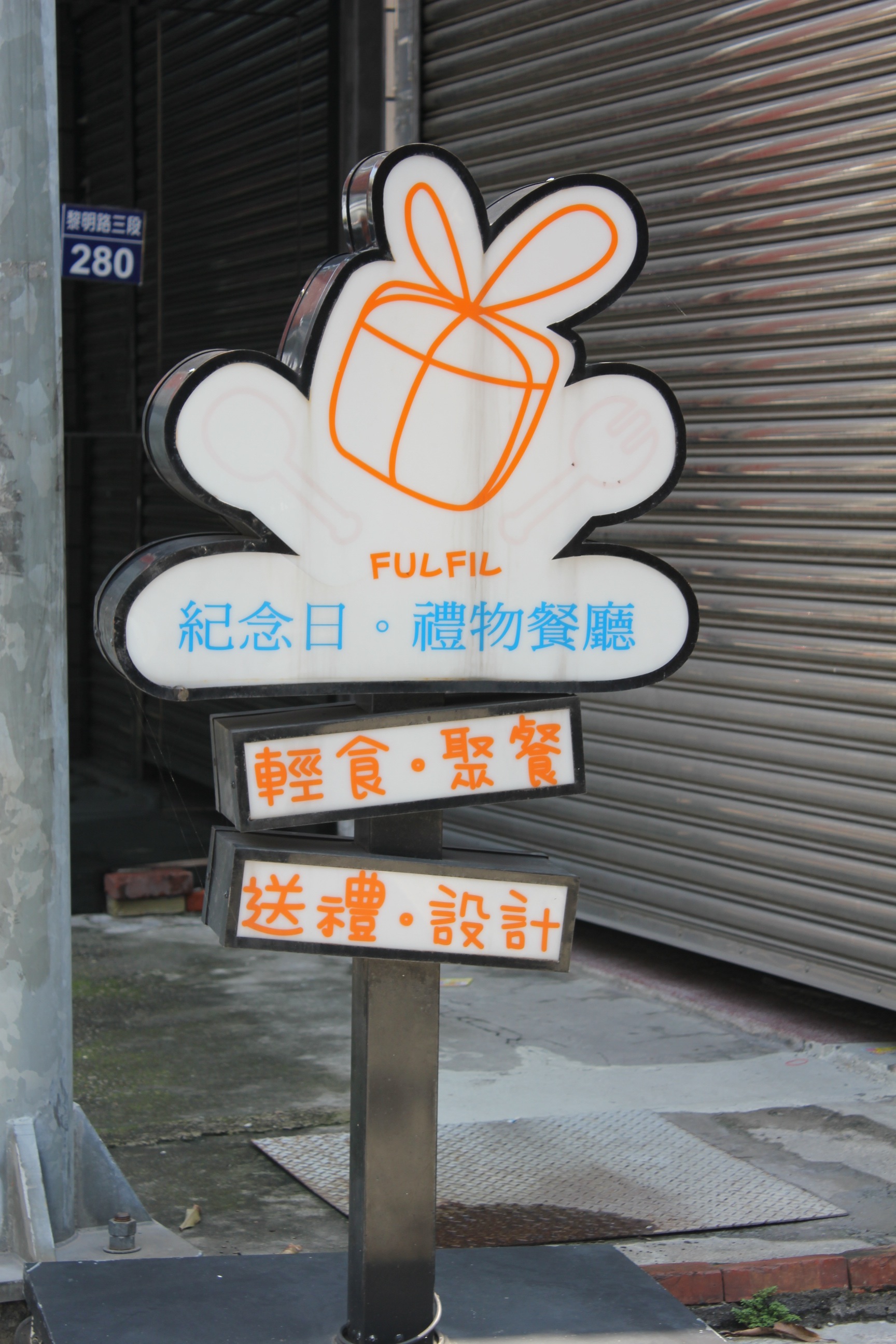 今天的來的這家餐廳,叫做fulfil,這裡有兩家品牌系列在一起,一個是作為餐廳的fulfil禮物餐廳,另一個則是紀念有禮,專門提供台灣品牌設計師所設計的趣味小禮品,也有提供克制化的禮品設計。好奇怪噢,為什麼會有兩個品牌系列的東西在同一家店呢??