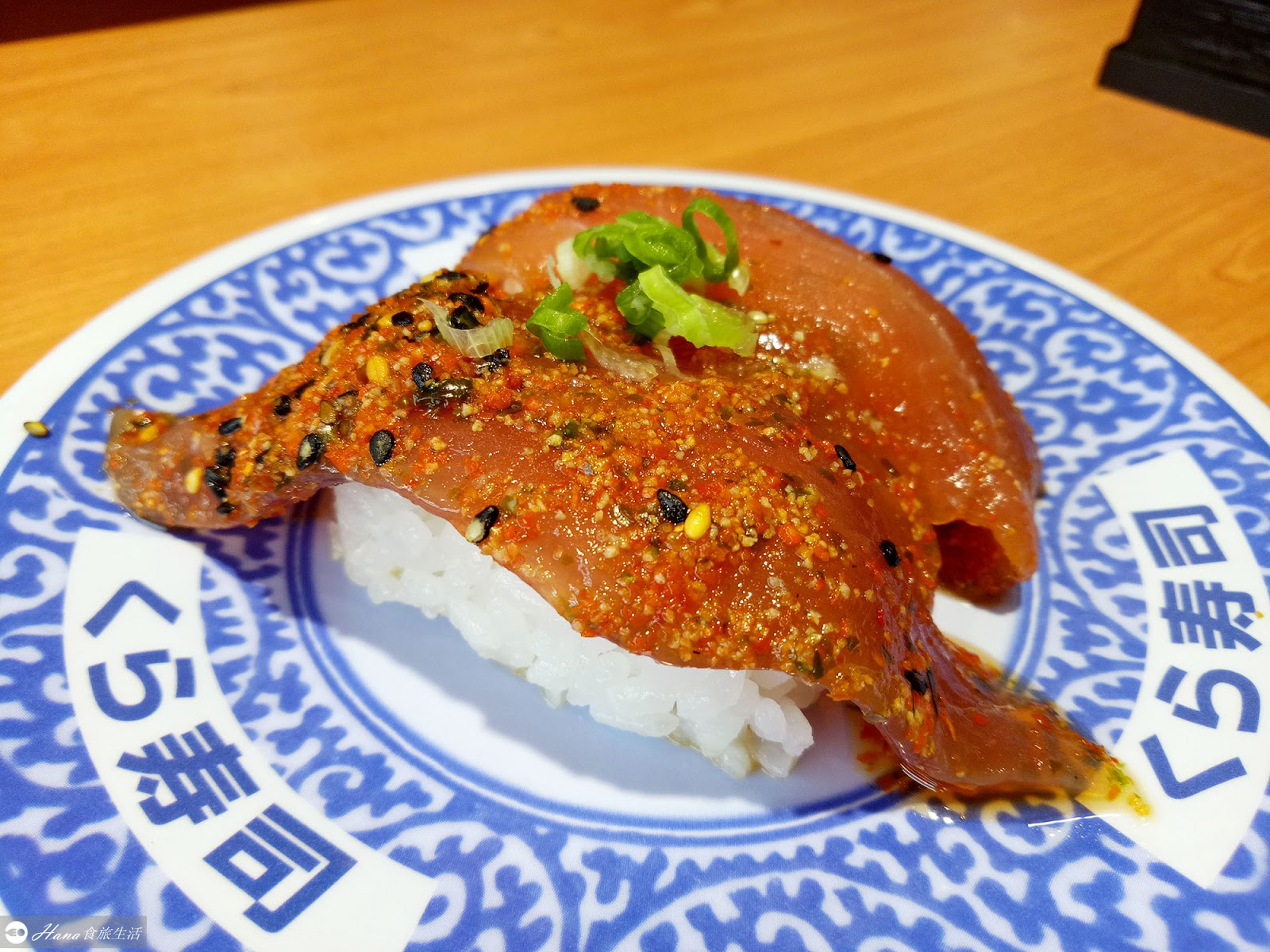▲七味粉醃漬鮪魚$40,有點微辣,算是調味較重口味的壽司,不錯吃,