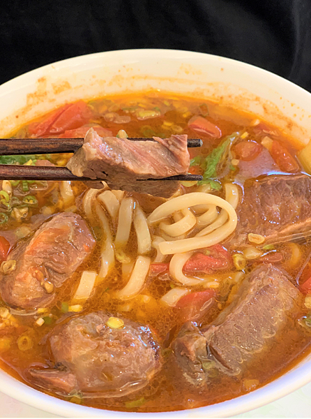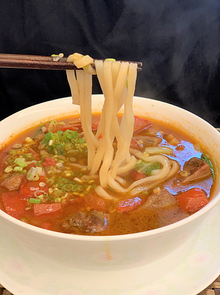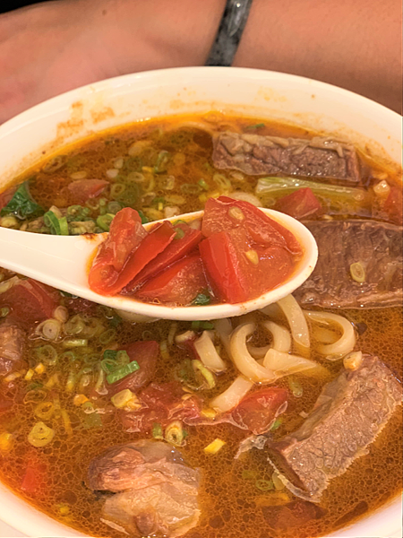 吸附滿滿番茄牛肉湯汁精華之後的麵條很是不思議