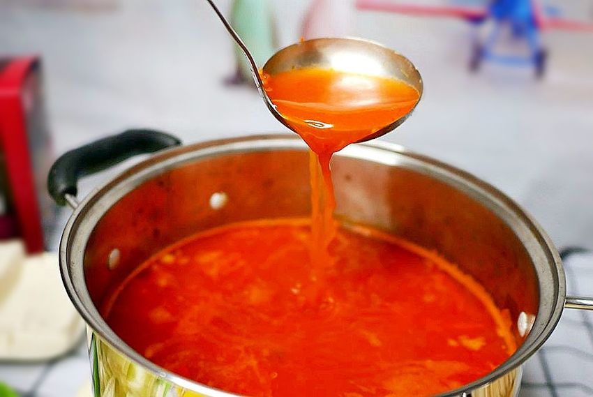 部隊鍋的湯底是以以韓國辣椒粉+魚露+純正辣醬.最後再加入泡菜熬煮的