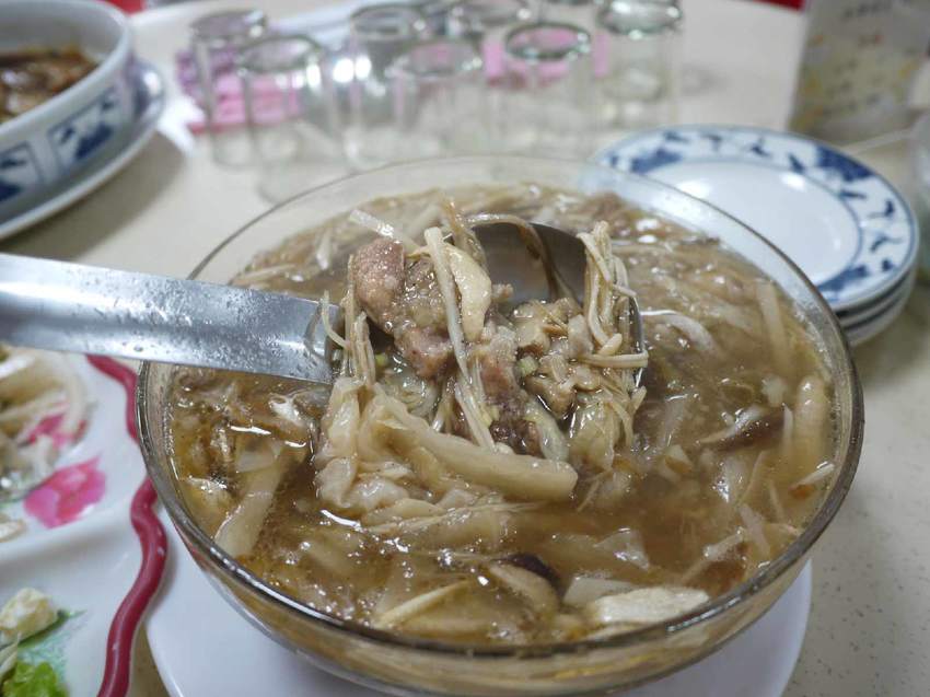 吃飽飽好找頭路,有點像白菜滷,又有點像佛跳牆的綜合口味,有筍絲、白菜、排骨、菇類...