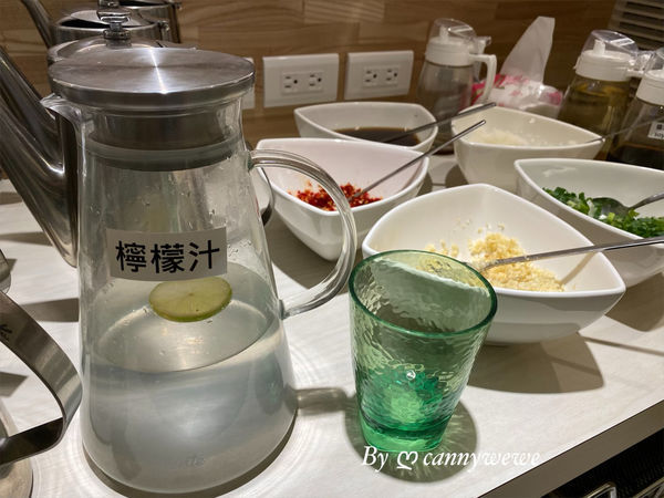 自助式吧台有醬料很齊全,有辣椒、蒜、蔥、蘿蔔泥、沙茶、黑醋、白醋、醬油