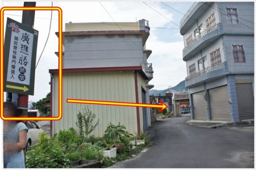 廣進勝的指引牌很漂亮,有著濃濃的客家花布風情