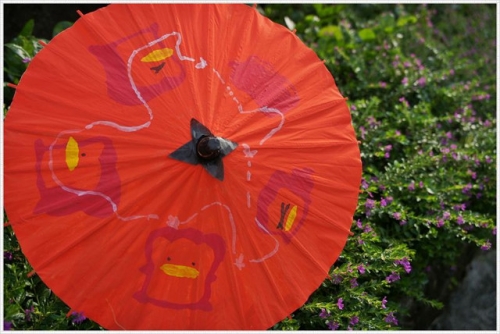 我們就在門口空地的長桌上開始繪製自己的紙傘