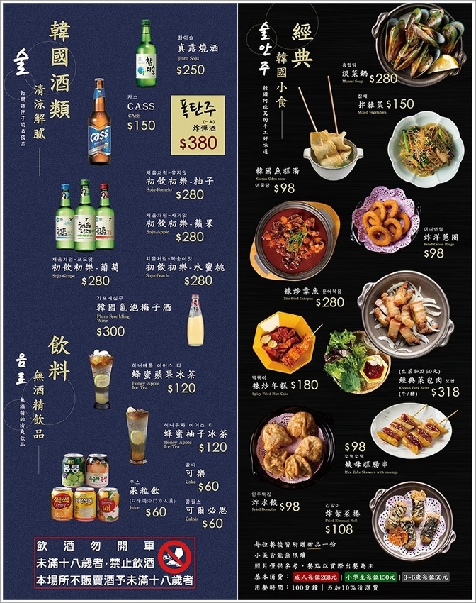 ▼此外也有經典的韓國小食、韓國酒類、無酒精飲品等,想要來這裡邊用餐邊小酌也沒問題!(未滿十八歲請勿飲酒)