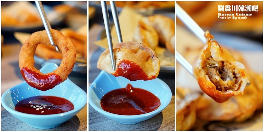 ▼一旁都有搭配番茄醬享用,洋蔥圈吃起來外酥內嫩,還帶有洋蔥的甜美湯汁,搭配醬料更試提味解膩!炸水餃,外酥內軟,還有飽滿的肉餡湯汁,單吃就很不賴~