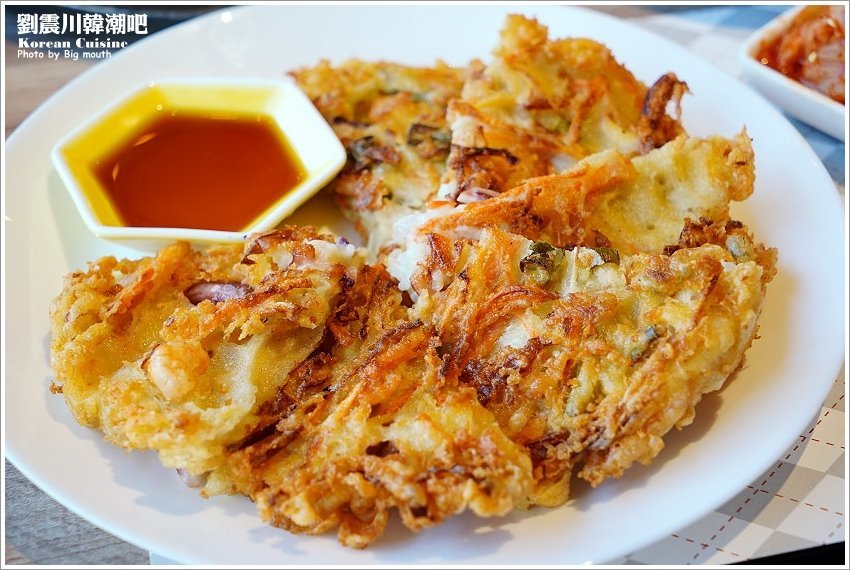 ▼海鮮煎餅,裡頭足足有六大塊,份量十足;裡頭有魷魚、蝦仁、高麗菜、蔥段、紅蘿蔔絲等配料,包裹在酥脆的麵衣中,一整個好料滿滿!