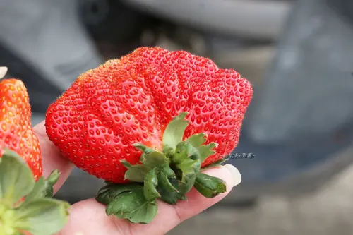 第一次採草莓的QQ 開心的要拿給爸爸看