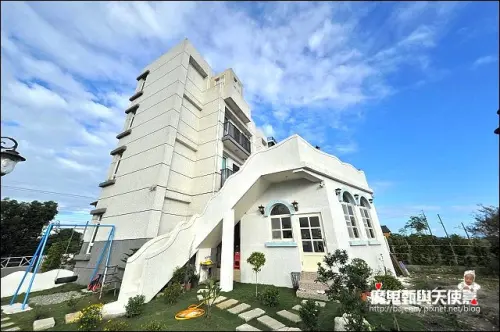 民宿入口處純白色的LOGO是最佳拍照景點,貼心的無障礙設計好方便
