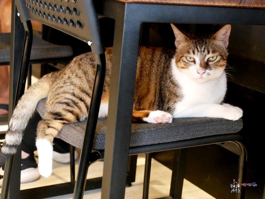他們也有養兩隻貓啦!這兩隻貓主子肆無忌憚的躺在椅子上,好像別人都不關牠們的事一樣,完全不想理人。