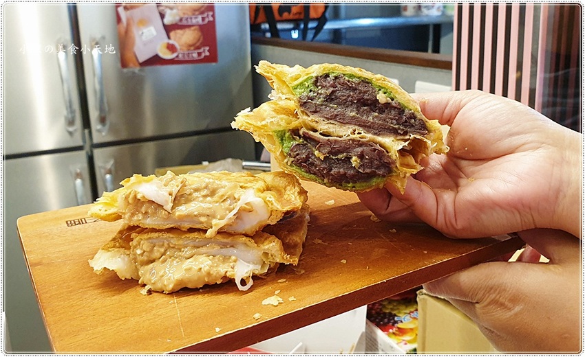 外層又香又酥脆的奶酥餅皮搭上Q軟的麻糬、花生,你儂我儂的結合,當下午茶來食用真的超讚!!