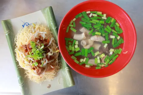 牆面上掛著蔡供客人點餐參考,土魠魚羹可選擇米粉與麵兩種,還有可以選擇同時加入兩種麵條。
