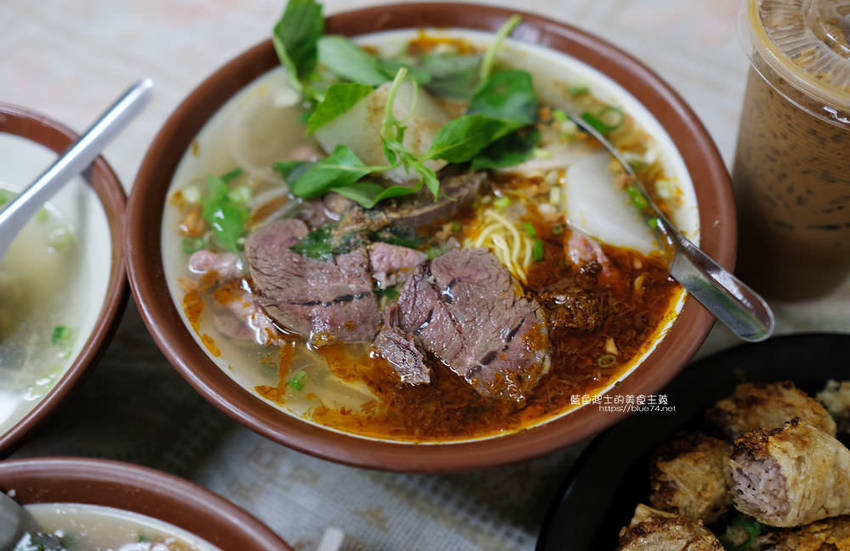 起源於古城順化,順化牛肉麵不像牛肉河粉的常見度來的高,所以有看到就點來吃看看,湯頭看似會很辣的樣子,其實滿開胃的小辣而已
