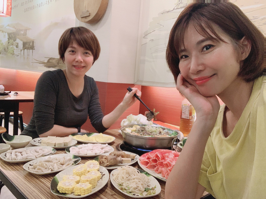 細數一下鍋內的配料,蒟蒻、鳥蛋、玉米、豆腐、豆皮、大陸妹、黑木耳、青江菜、大白菜、小麥纖維....