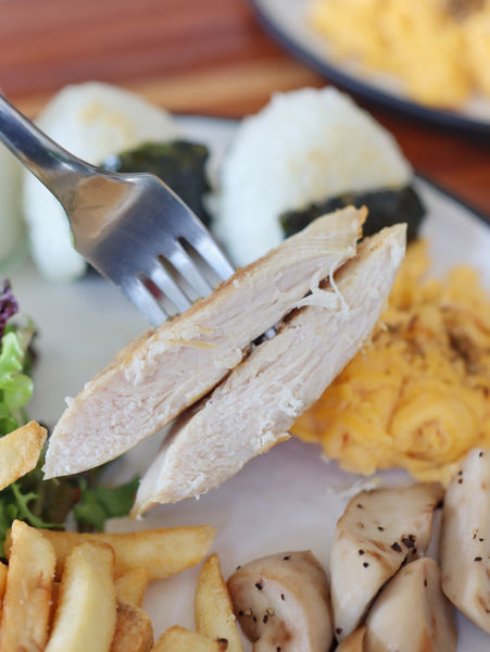 ▫️上次來吃的是酥脆多汁的唐揚雞,這次來試試減脂增肌聖品活力雞胸!很多人不愛吃雞胸,因為雞胸脂肪低,肌肉纖維含量偏高,處理不好容易柴,雪冰王子使用低溫舒肥烹調,成功讓雞胸鎖住水分、保留柔軟度,讓我吃光也沒罪惡感啦(拇指)