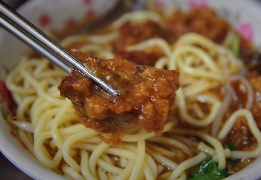 排骨酥麵一份90元(偏貴),排骨酥軟爛入味,軟爛,帶了許多軟骨,如果不怕硬的人可以整塊一起嚼下去;麵條不Q彈中規中矩,湯頭用了大量的油蔥來提味,我自己是沒有很喜歡!