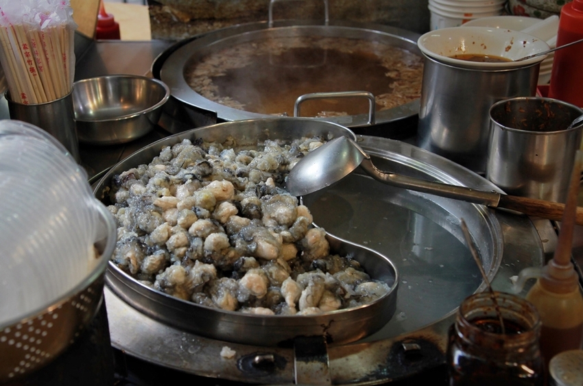 有許多名人前來加持的蚵仔煎店家,牆上掛滿了許多知名藝人來用餐的照片、簽名等,這家也算是Ann和榜哥很常來吃的一家店,每次來都一定點一份蚵仔煎來吃,廟東夜市這邊的蚵仔煎都很特別,醬料特別就算了,裡頭的青菜不是白菜而是空心菜,超奇妙的組合,一吃就讓人難忘。