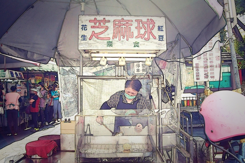 來到豐原廟東夜市的入口處,大家一定會經過這攤不太起眼的芝麻球攤販,其實Ann和榜哥以前都不會買來吃,但這次經過看到油炸超漂亮的芝麻球就忍不住買來吃。一顆20元,3顆50元,內餡有花生跟紅豆,裡面是空心但口感很Q彈,香氣很夠,很推薦大家來這要買來吃看看!