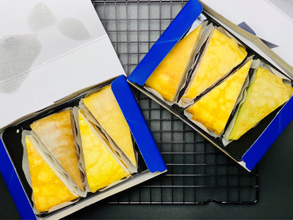 這樣千層蛋糕就不會東倒西歪、或是在盒子裡晃來晃去了