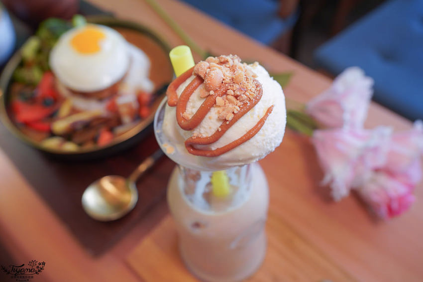 新鮮水果冰品也很吸引我的,我們點了一杯「聖山仙氣奶茶」就有一球”好事繪花生”!!