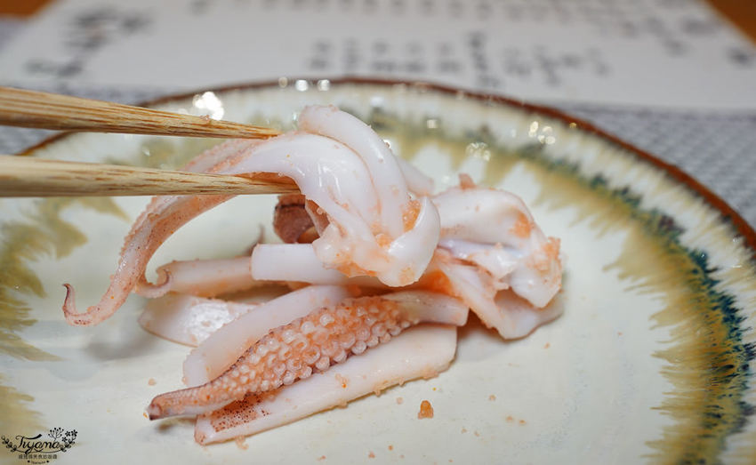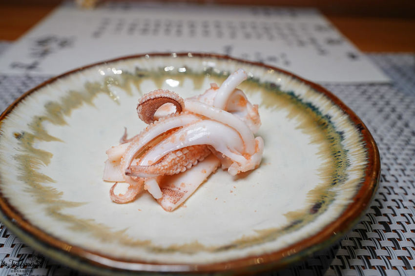 選用澎潮產新鮮槍烏賊與明太子作結合,一開始以為選用的辣明太子,入口鮮甜Q彈,明太子香而不過鹹也沒有辣度,小小驚艷了一下,殊不知…我吃太多理所當然的再製食材,問了師傅…才知道,師傅採買的是整條新鮮明太子處理醃製,自然大不相同。