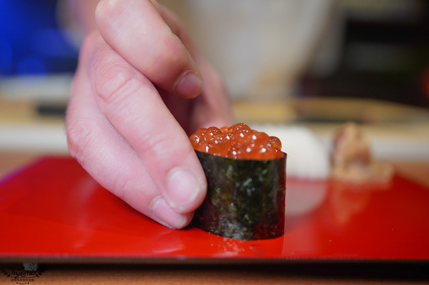 北海道秋鮭,有著雙倍濃郁的鮭魚香,肉質細緻…口感宛如魚肚部位般的肥美,身為鮭魚控的我,吃到心花怒放,原來一直誤會日本鮭魚,全因為是季節和品質的問題,師傅說北海道秋鮭在中秋節前後~12月期間最肥美,鮨本味在這段期間才吃得到。