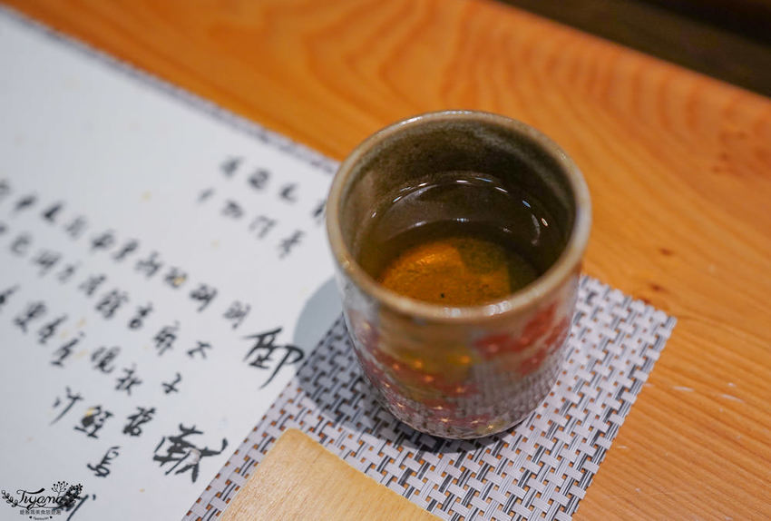 就座後,由穿著和服的服務人員,送上一杯清香淡雅的玄米綠茶,用餐期間不時幫我們添加,服務親切,有賓至如歸的感受。