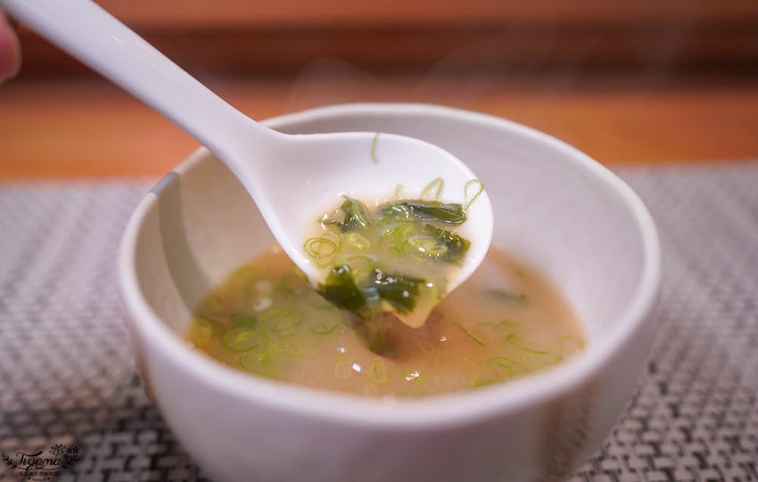 使用赤味噌、白味噌、黃味噌、不加任何調味料所熬煮的味噌汁,順口不過鹹,切成薄細的蔥花,口感像極了蔬菜。