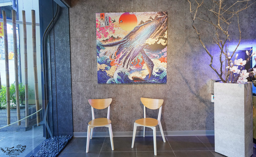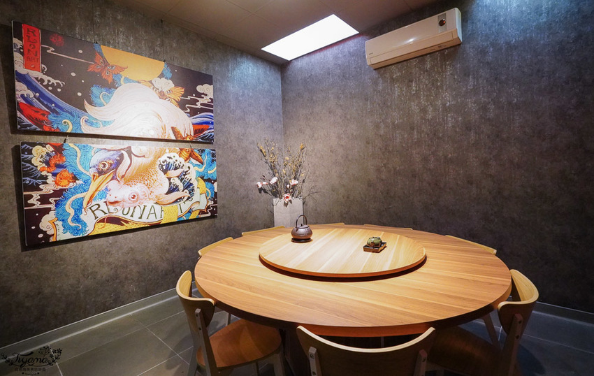 鮨本味有2間包廂區,中間設計是可以2間相通,以應付小團體顧客。餐廳內所有掛畫皆選用日本傳統繪畫「浮世繪」,略為顯露霸氣與現代的衝突美感,個人很喜歡這樣的設計。