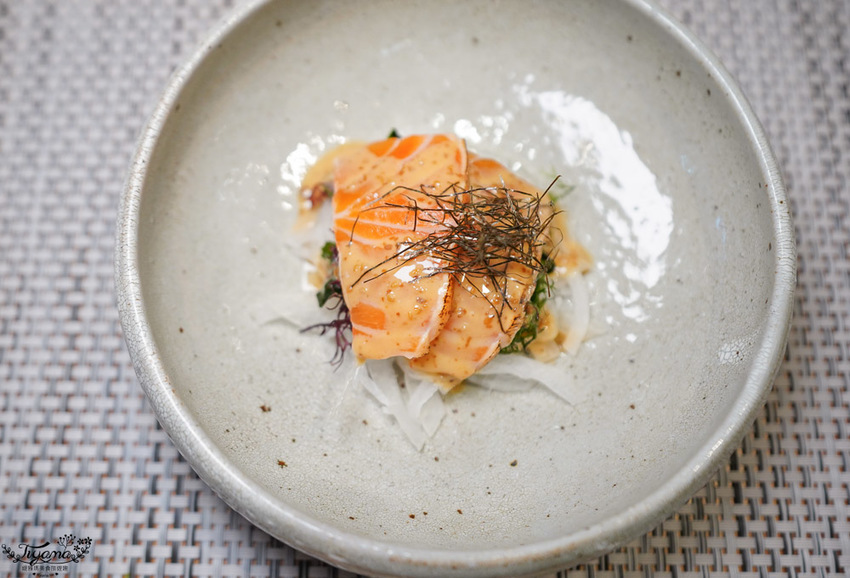 緹編對旗魚其實沒有特別的喜愛,三切片成貫的白旗魚,入口油脂豐富,與之前吃到的旗魚完全不同,一度懷疑吃到的真的是旗魚嗎?就是這般的驚喜,讓我更期待接下來的料理。