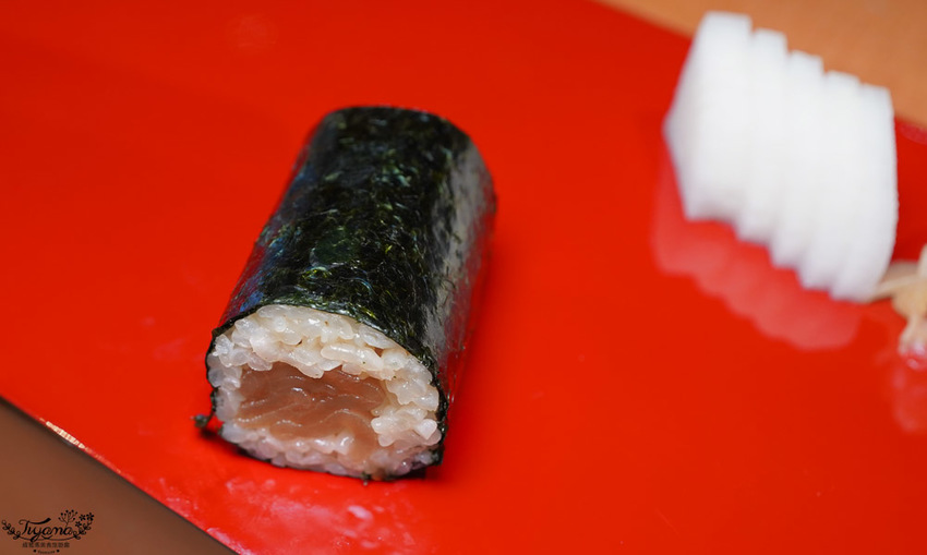 再次展露醋飯功力就是這卷「千瓢卷」,經過卷壓的力道讓米飯粒粒分明、緊密相黏不散開,中間包入漬瓢瓜,微甜微鹹…樸實美味。