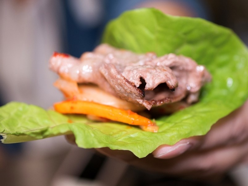 可以搭配泡菜跟自己喜歡的醬料,做出客製美味,選用油花含量高的肉,可以完美的融合肉香、醬香、油花香,口感超棒。