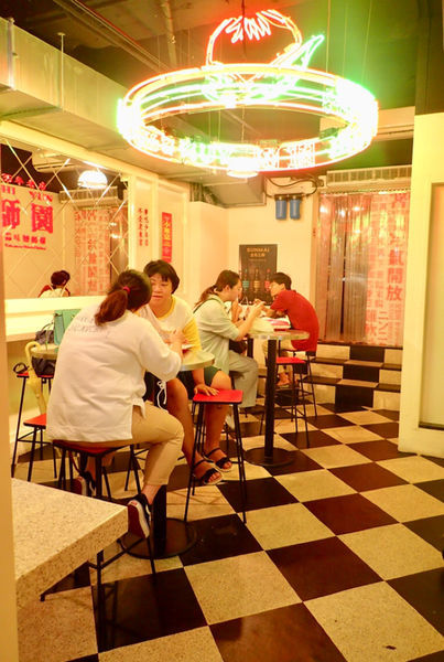 座位很復古,我很喜歡的設計,上面的燈很可愛!