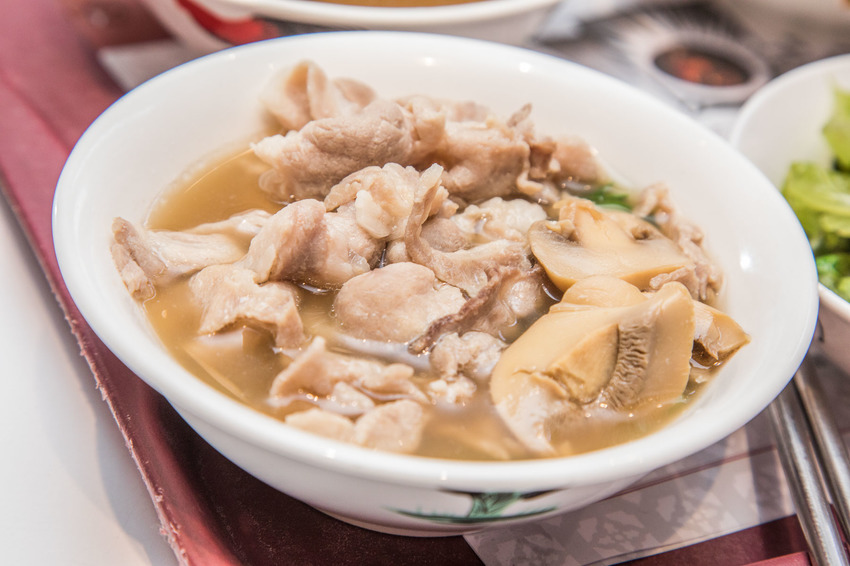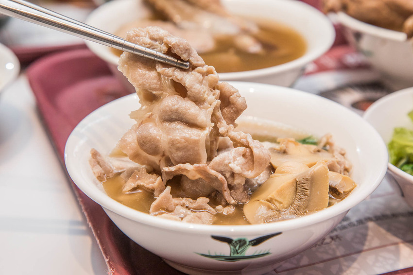 黃亞細的鮮灼肉片湯也是相當受歡迎,嚴選梅花肉片,油花比例相當完美,肉片更易吸收湯汁的精華,除了梅花肉片外還加了菇類,整體湯頭喝起來更鮮甜順口