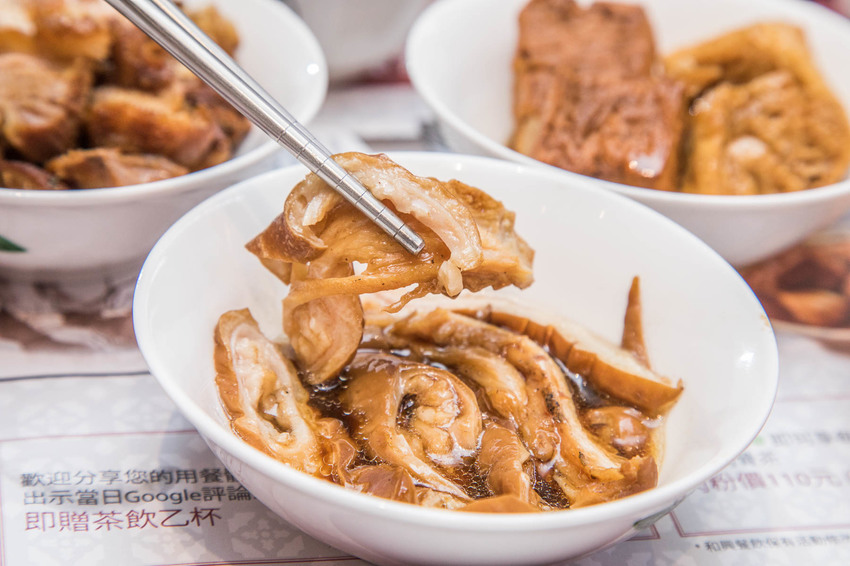 滷大腸頭口感也很棒,大腸事先處理過,滷製後吃來不油膩,大腸頭口感彈牙,也吸收了許多滷汁,多汁鮮嫩