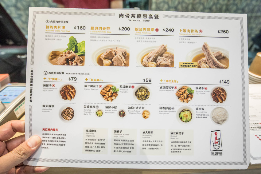 黃亞細肉骨茶-大江店的菜單,可單點也可選擇套餐,價位也還蠻親民,咬咬比對過新加坡的菜單,相差無幾