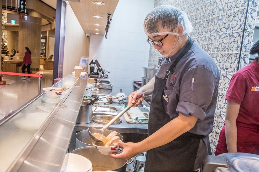 黃亞細肉骨茶-大江店是開放式的廚房,點好單結完帳自助取餐,看到廚師盛裝一碗碗熱騰騰的肉骨茶,在冷冷的冬天看來格外心暖!而且更棒的是湯都可以無限續喔