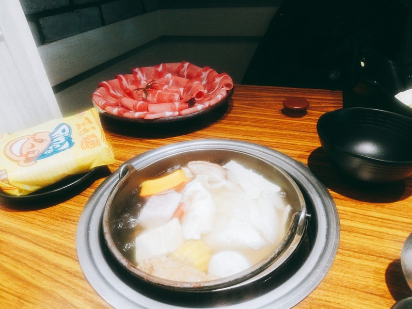 女兒的火鍋肉片給的也不少,湯頭一喝很訝異,是清甜的蔬菜高湯滋味。