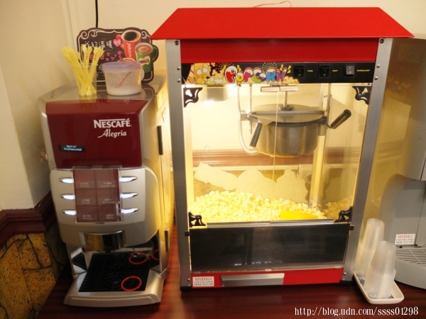▲我真的很少在小火鍋店看到咖啡機和爆米花機,當天一看到頓時吸引我好奇