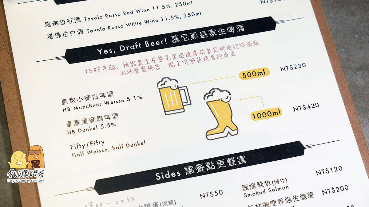 在酒類的選擇上,與木柵店不同,舒曼六號南京店主推德國HB的啤酒!