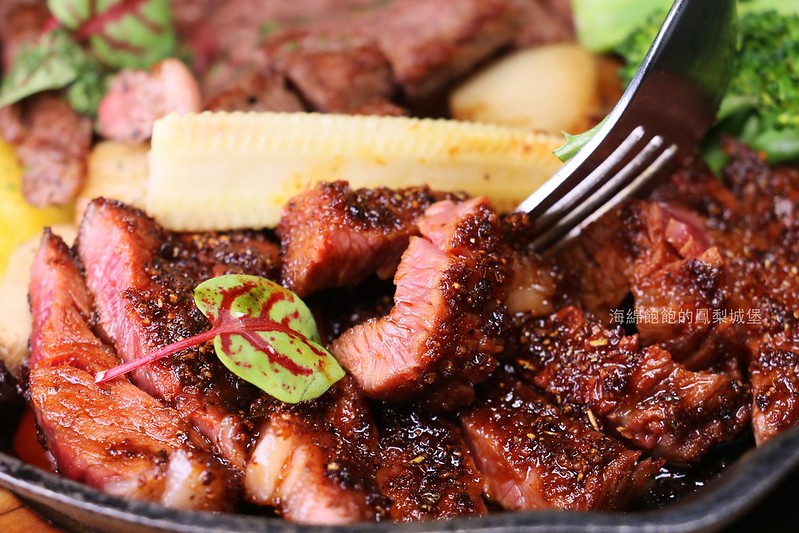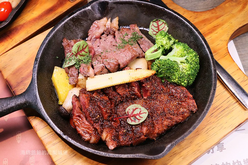 排餐以鑄鐵鍋裝,視覺效果不錯,可選五分熟或七分熟