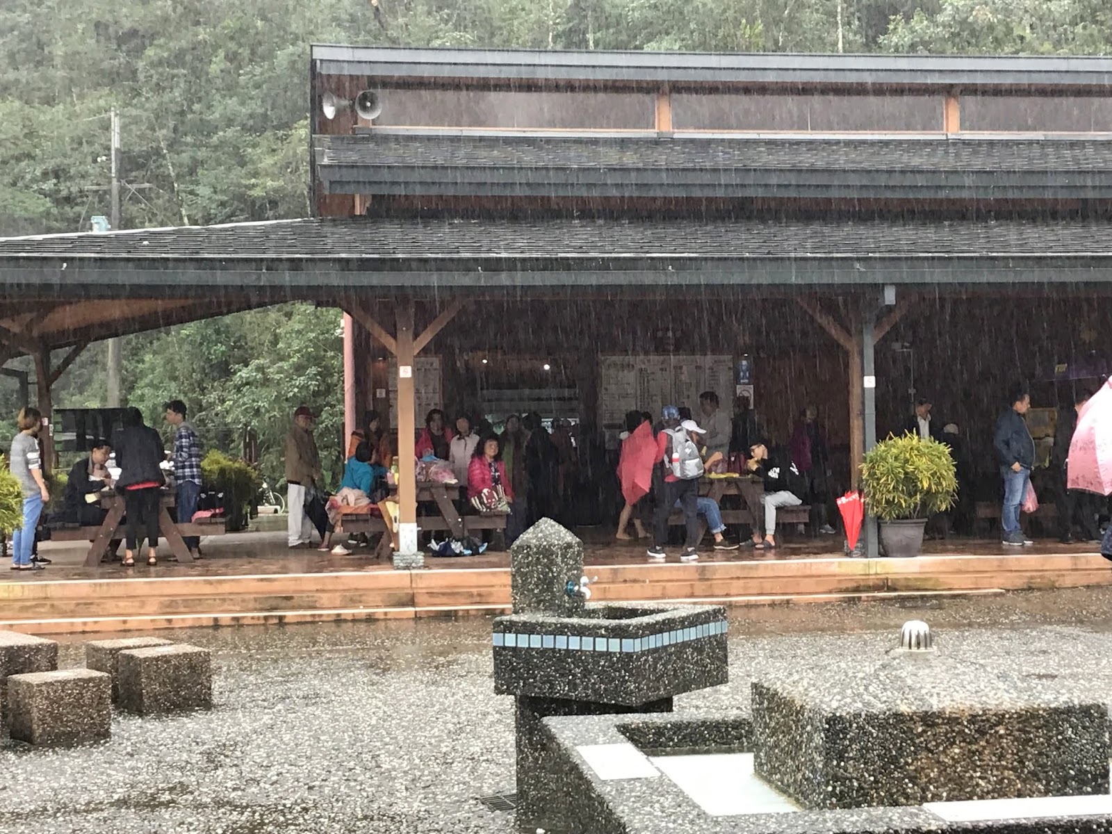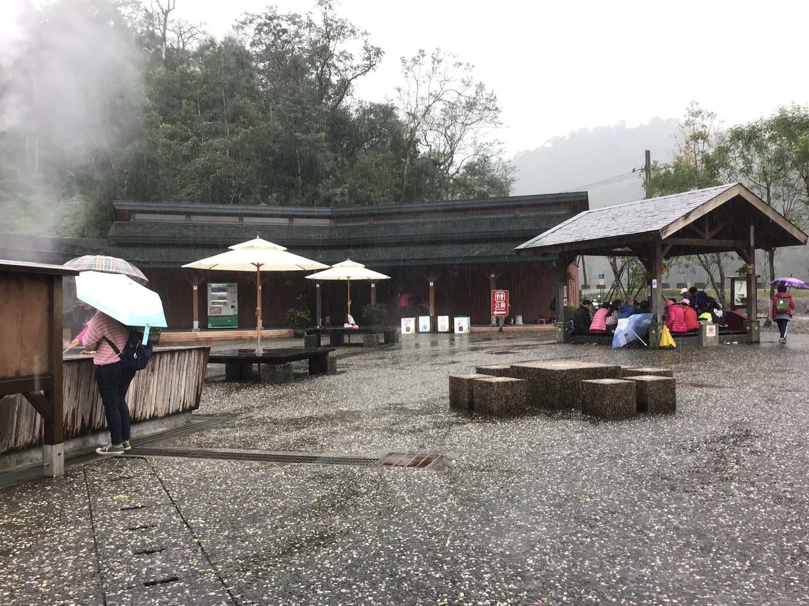 由於下雨天之故,遊客均在涼亭、泡腳池和販售區,