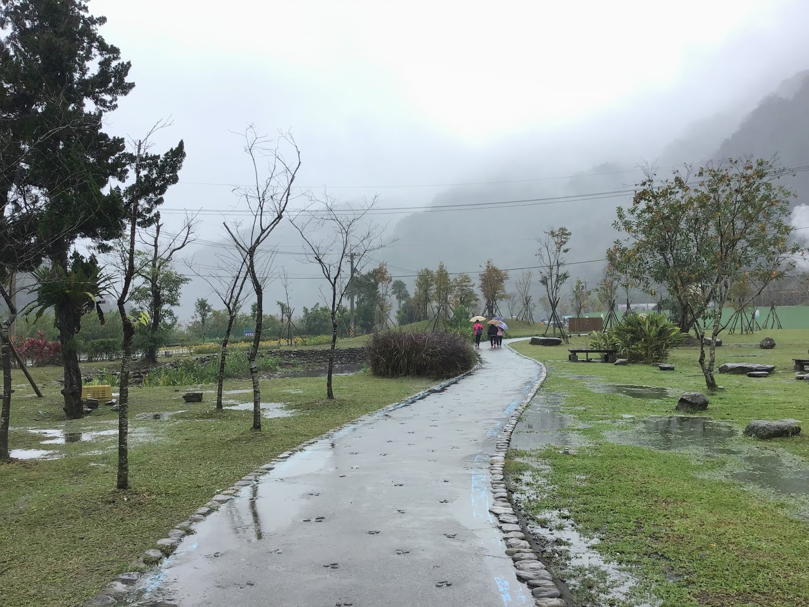 泥濘的水窪地,進而慢慢地走進園區的水泥道~