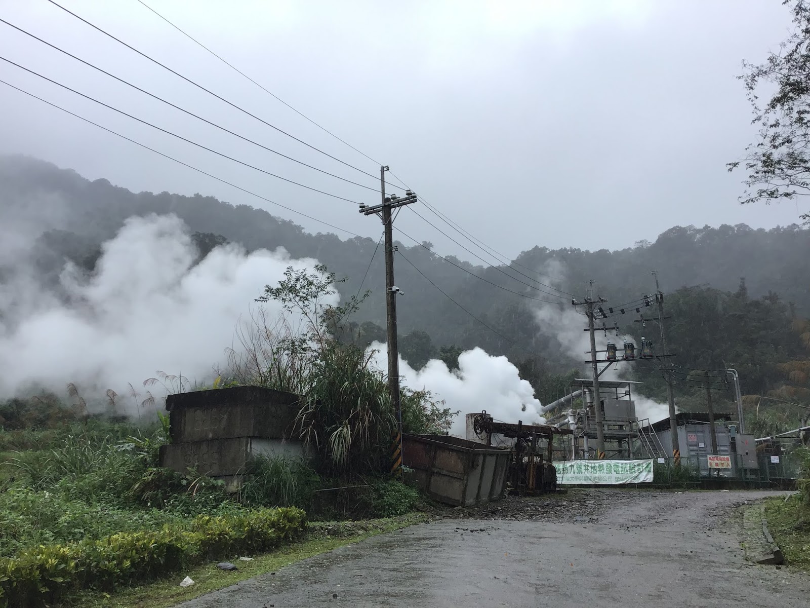 老遠就瞧見地熱竄出濃郁的裊裊白煙,在灰濛濛的雨天,