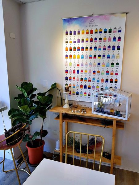 PS. 最後分享一下, 店裡的牆掛著一幅AURA SOMA彩油圖, 有興趣的人可以詢問店家相關服務喔!
